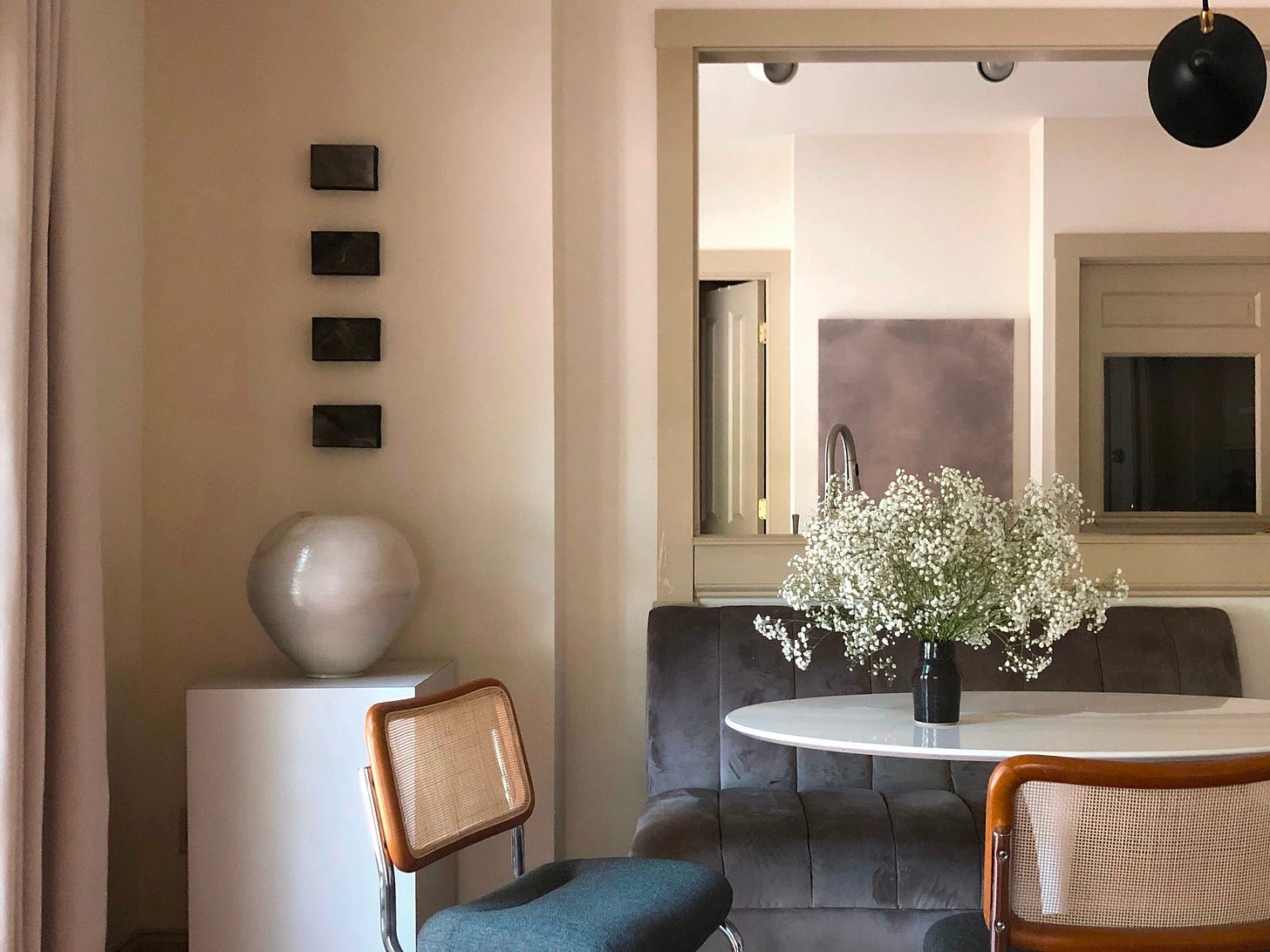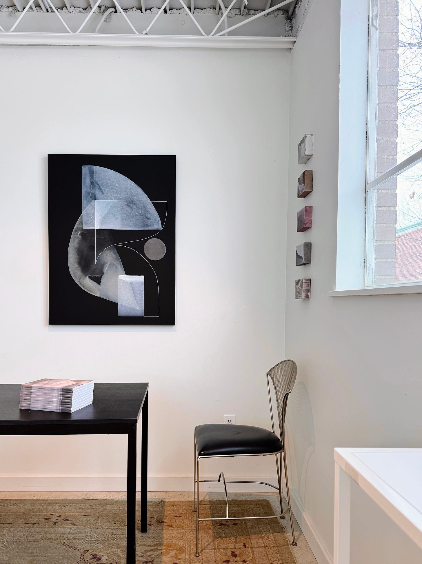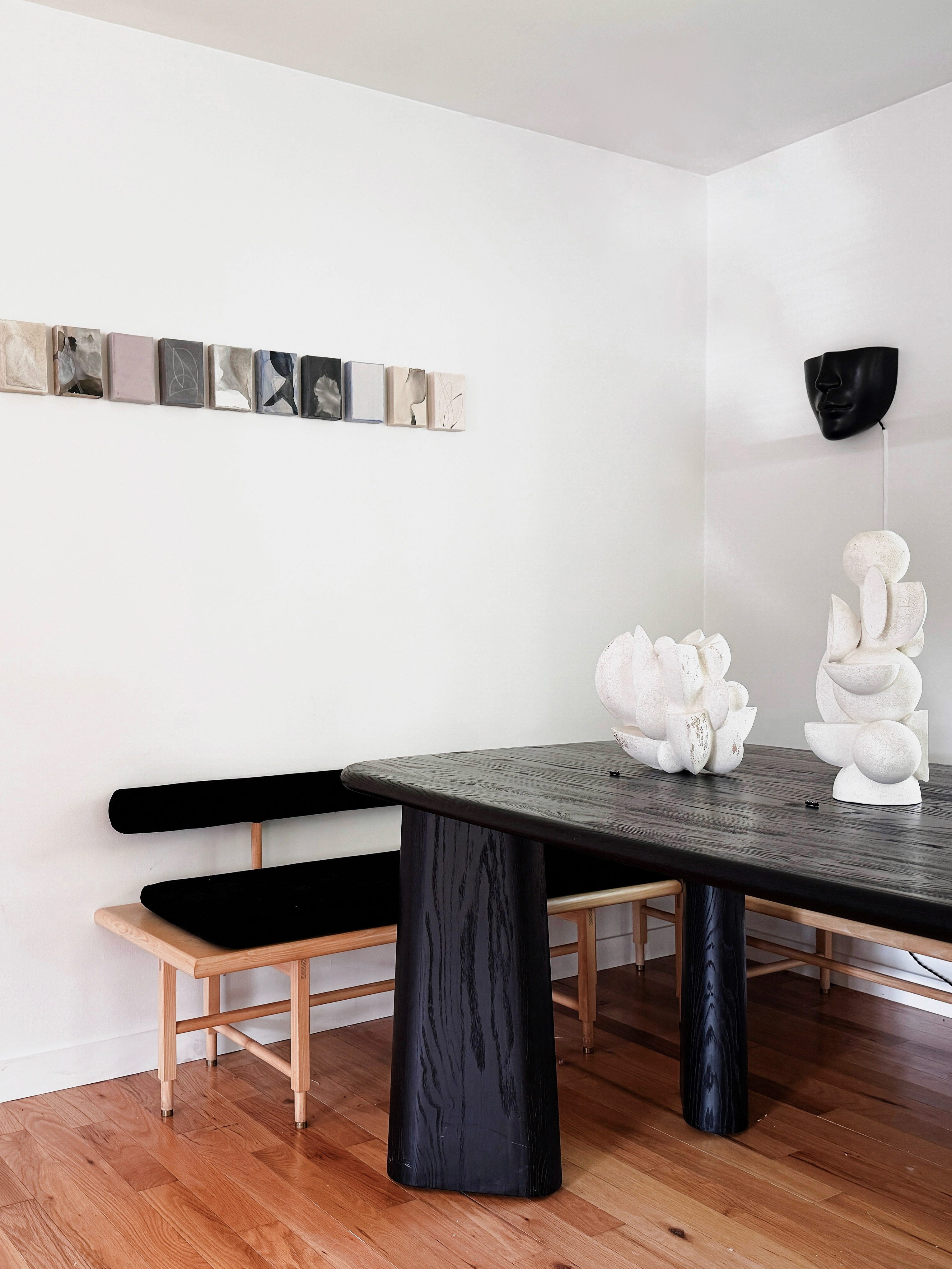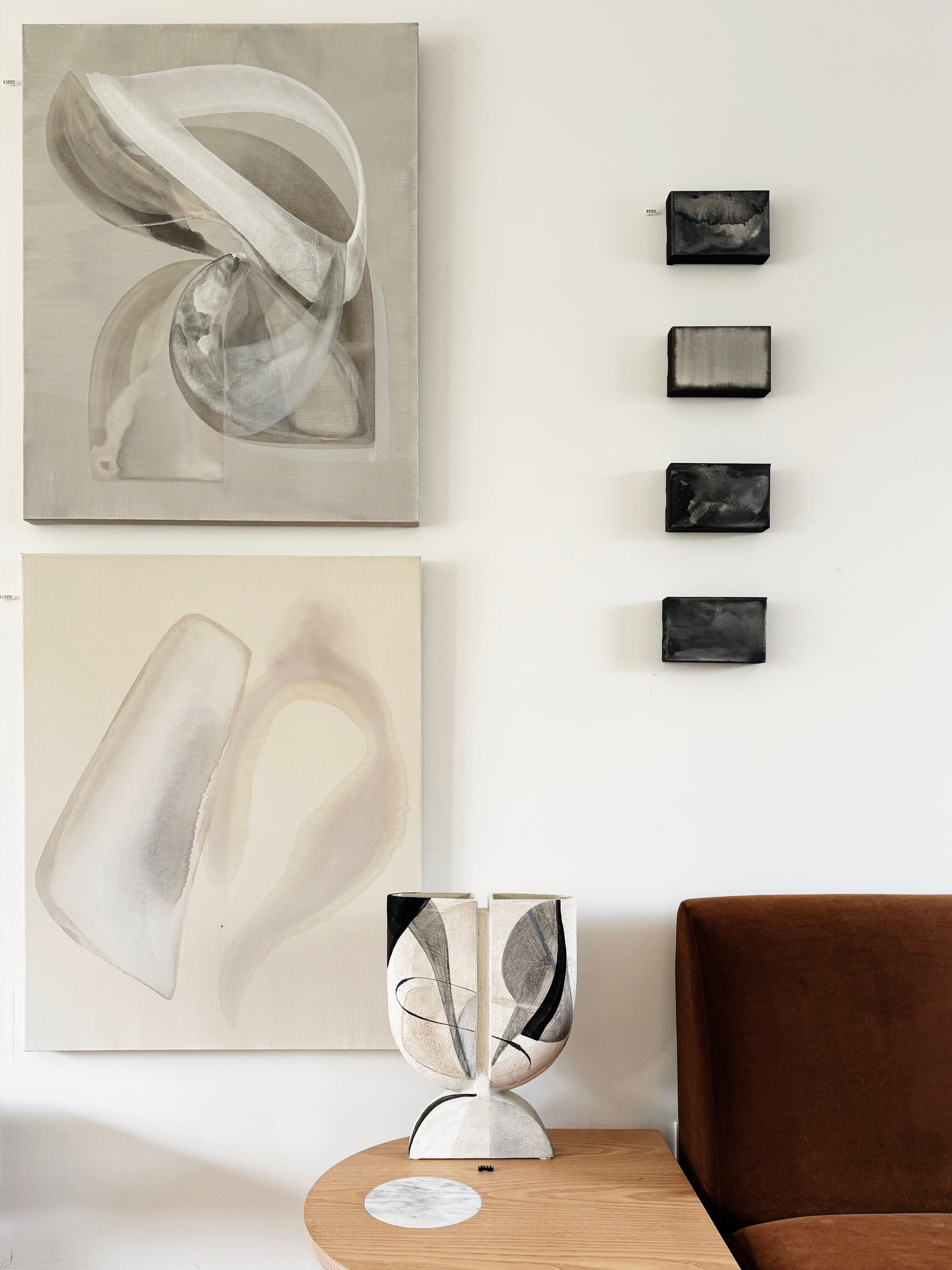Small works often play well with larger objects, opening dialogues among forms and shapes balanced along the dissonant scale. The impact resides in the tension between them—an intrigue in which the relationship both surrounds and magnifies the significance of each object.